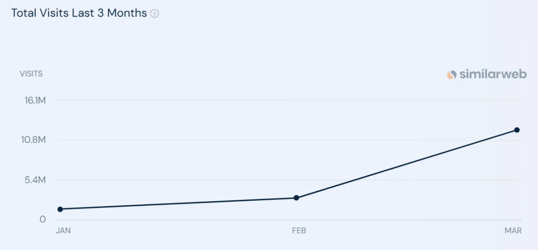 据Similarweb统计,月之暗面官网3月的月访问量约为1220万次