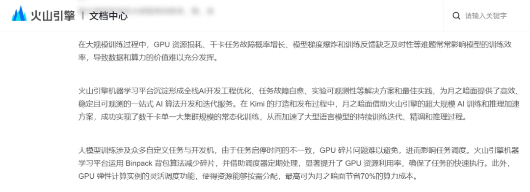 首先,Kimi很难自有算力。在3月份Kimi爆火宕机前后,一份关于Kimi的“专家交流纪要”流传,其中提到公司使用字节的火山引擎来支撑训练和运营,“公司不太可能私有化一个数据中心,供应链资源很难开拓,而且成本很高。”