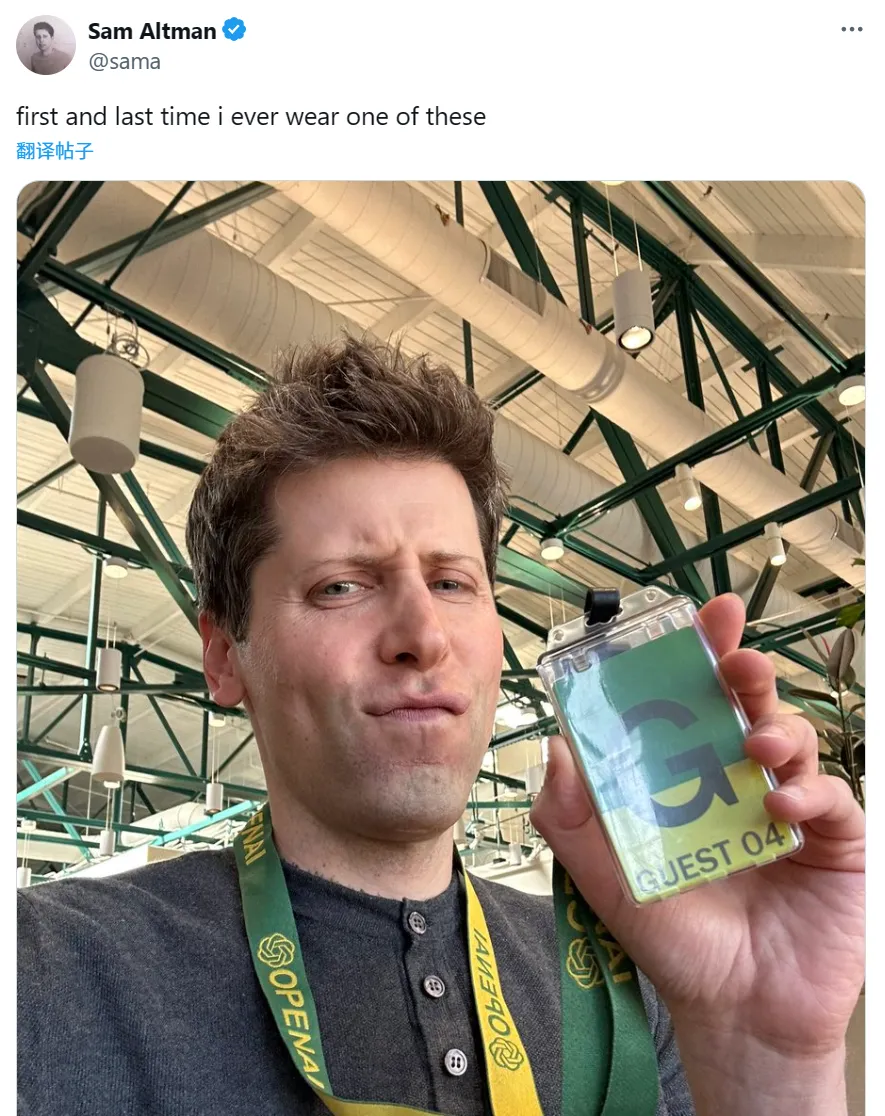 OpenAI“宫斗”期间,奥特曼一度不得不戴上“访客”工牌才能进入他的公司