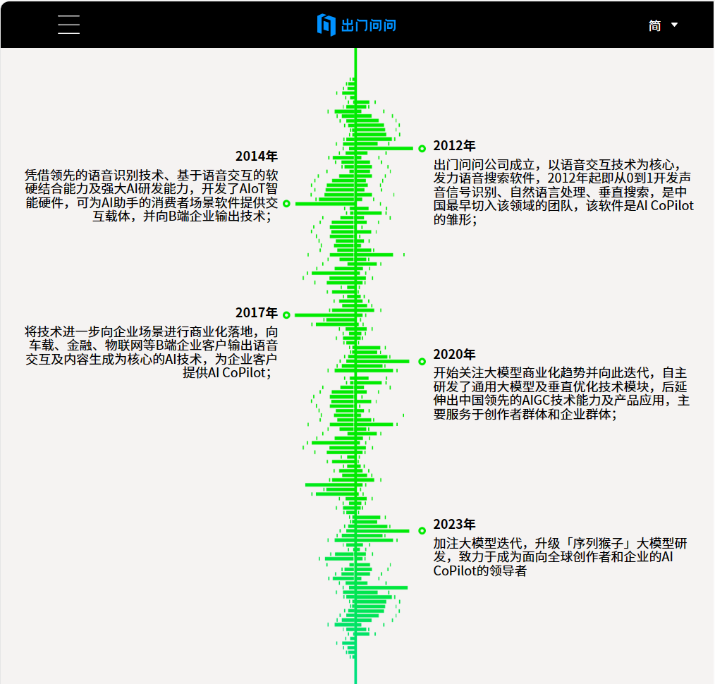 出门问问的第三阶段,从整体来看,主要依靠AI和大模型推动。目前它已经表示自己“是一家专注于人工智能技术的公司,提供以生成式AI与语音交互技术为核心的解决方案”。