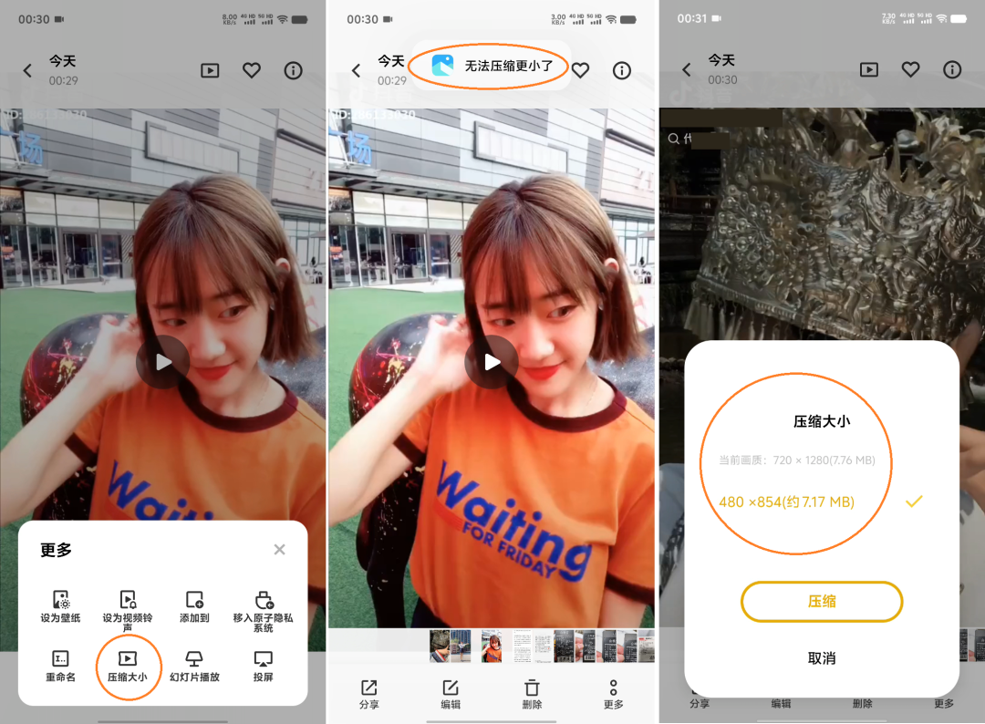 此时就可以发现,同一个账号的近似主题(例如都是拍人的、都是拍风景的),最热门视频往往是被严重压缩过的,仅有2M左右,而新上传的视频,就有7M大小,清晰度更高,并且支持进一步向下压缩。