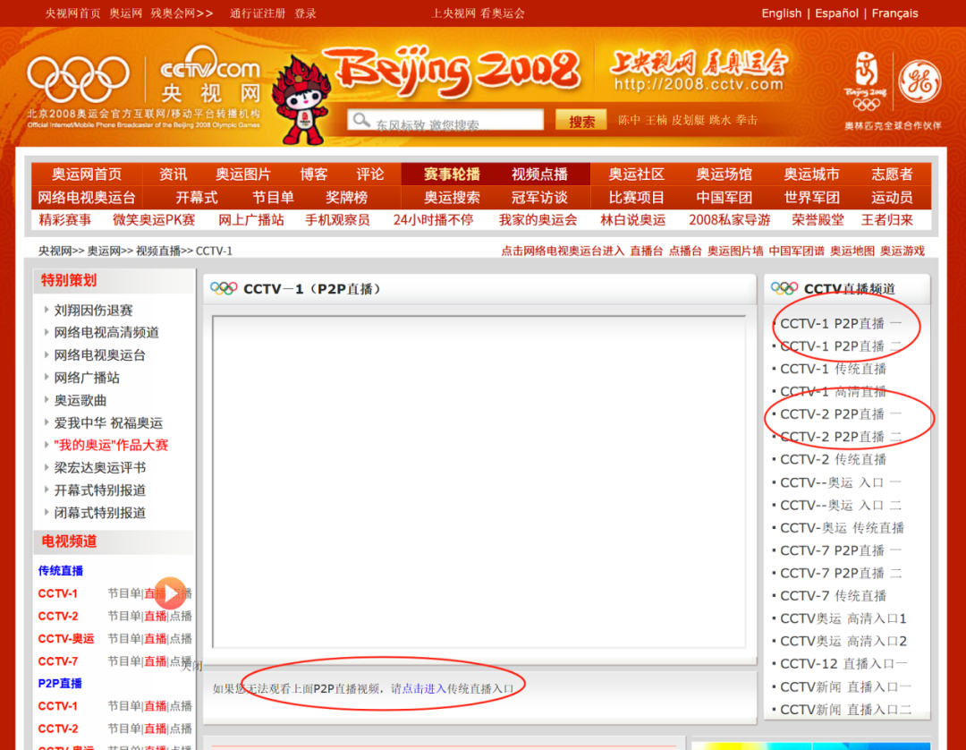 后来,P2P技术被应用到电视直播中,这使得直播的码流普遍能达到500kbps,好的情况下可以达到1m。至少在网吧观看奥运会开幕式时,其分辨率可以与标清电视拉平,但仍然会出现大量马赛克。