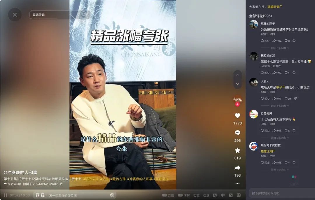有部分卖家称,“天珠”的价格在2013到2016年是低谷期,尤其是现代工艺的琉璃天珠需求不大,“那时蜜蜡更热门”。2013年几十块就能买到现在几百、几千的珠子。但是现在网红卖家确实推高了价格,这其中杨子当然是推销得最卖力,影响最大的一位。